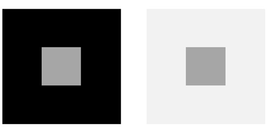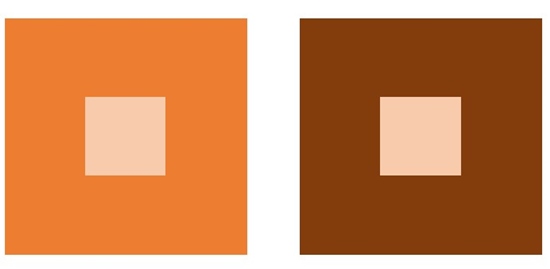 明度対比とは、同じ色なのにベース色の明るさによって、