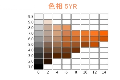 慣用色名とは異なり、色を系統立てて三属性とトーンで